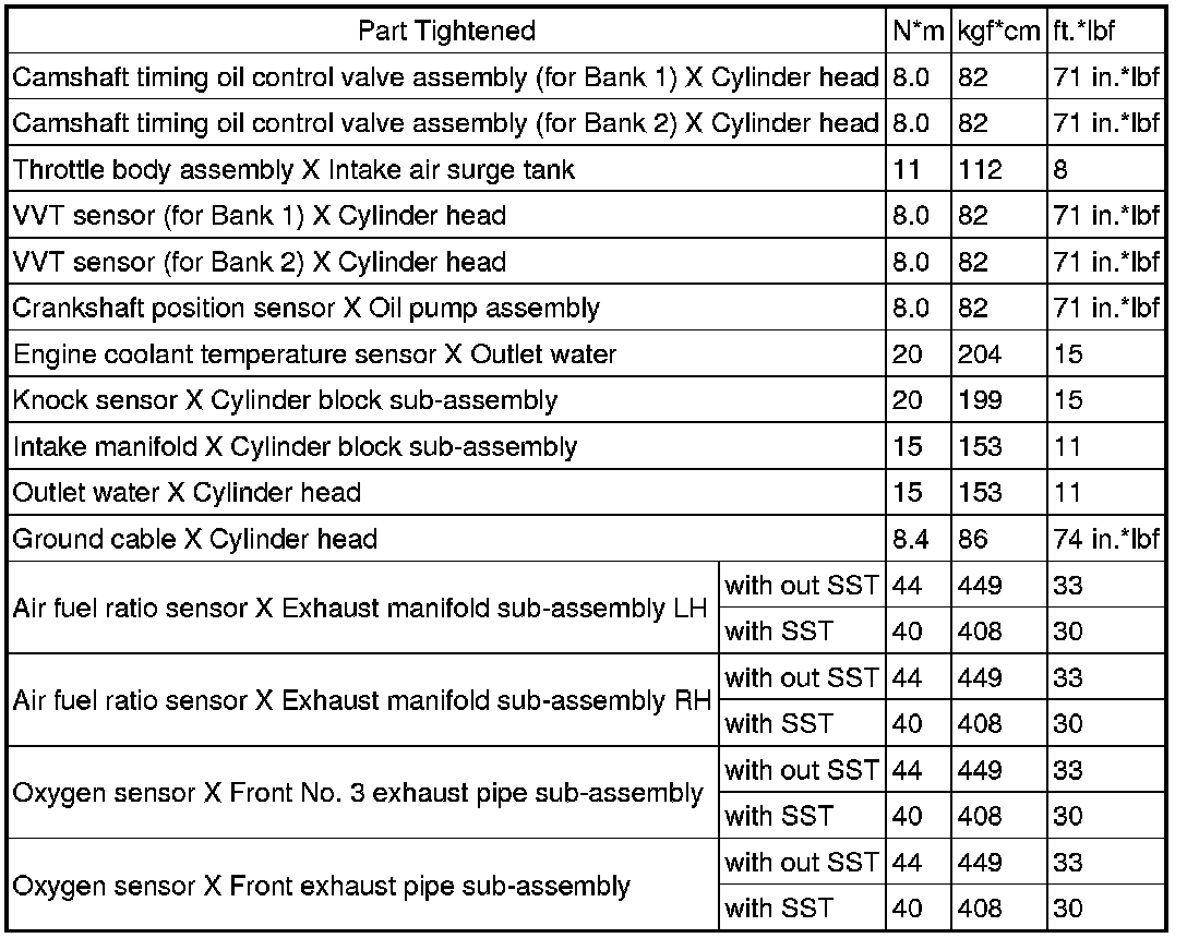 SERVICE SPECIFICATIONS: 3MZ-FE ENGINE CONTROL SYSTEM: TORQUE SPECIFICATIONS