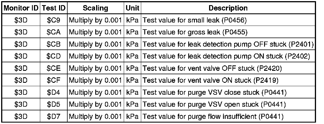 If you use a generic scan tool, multiply the value by the scaling value listed below.