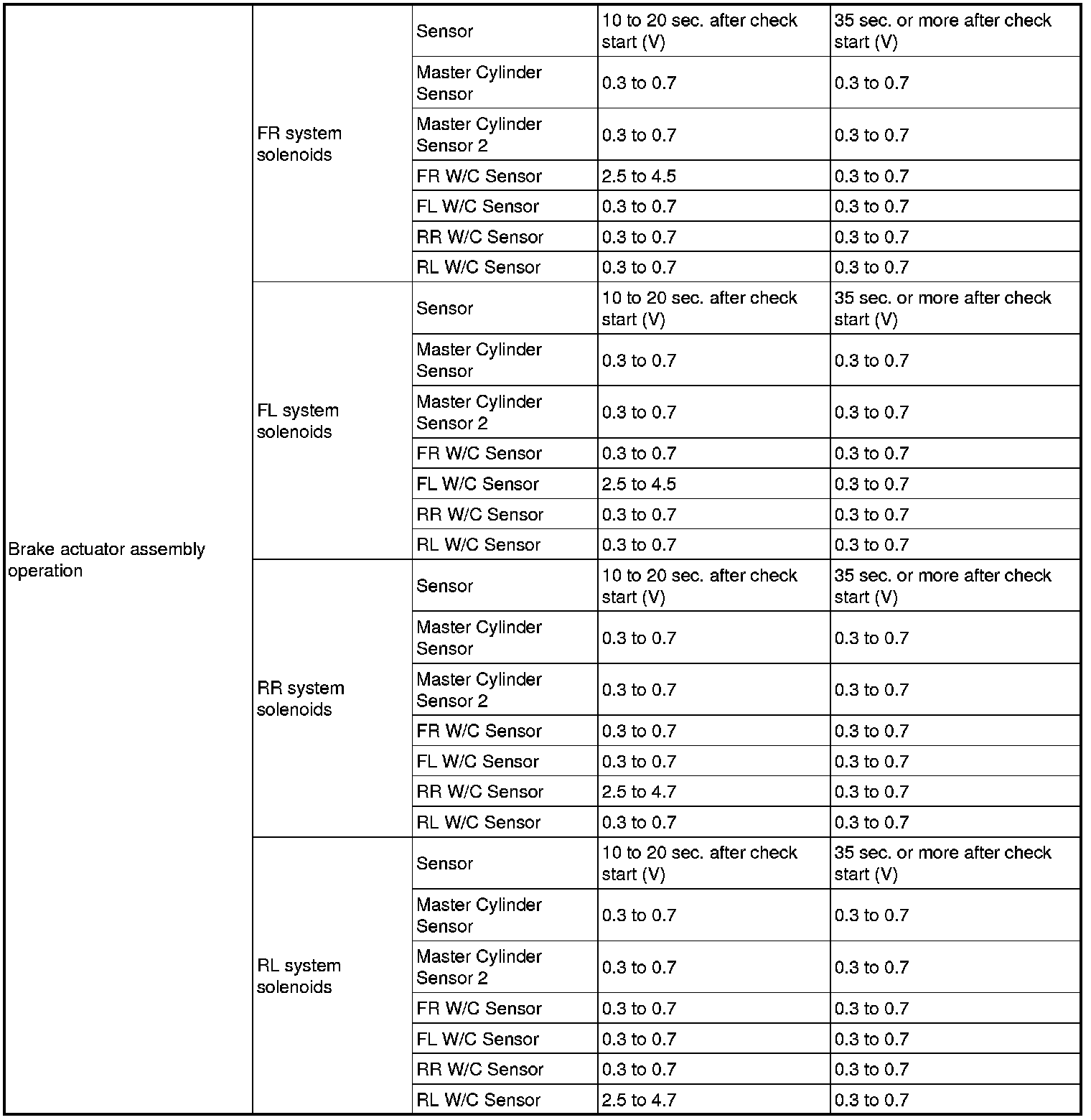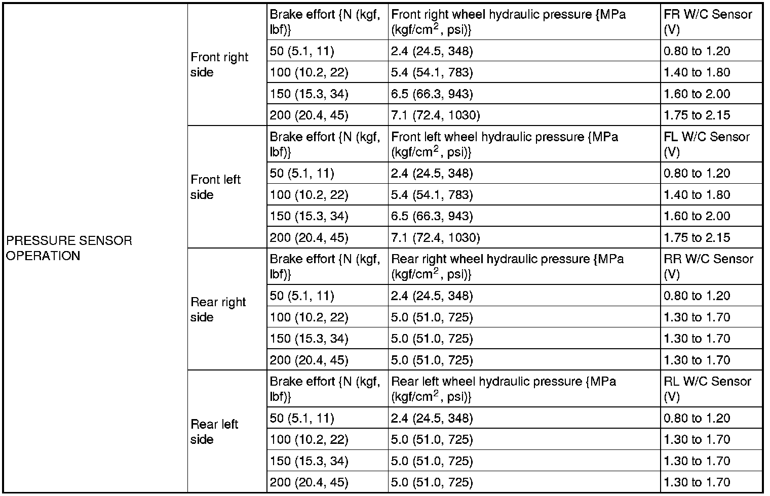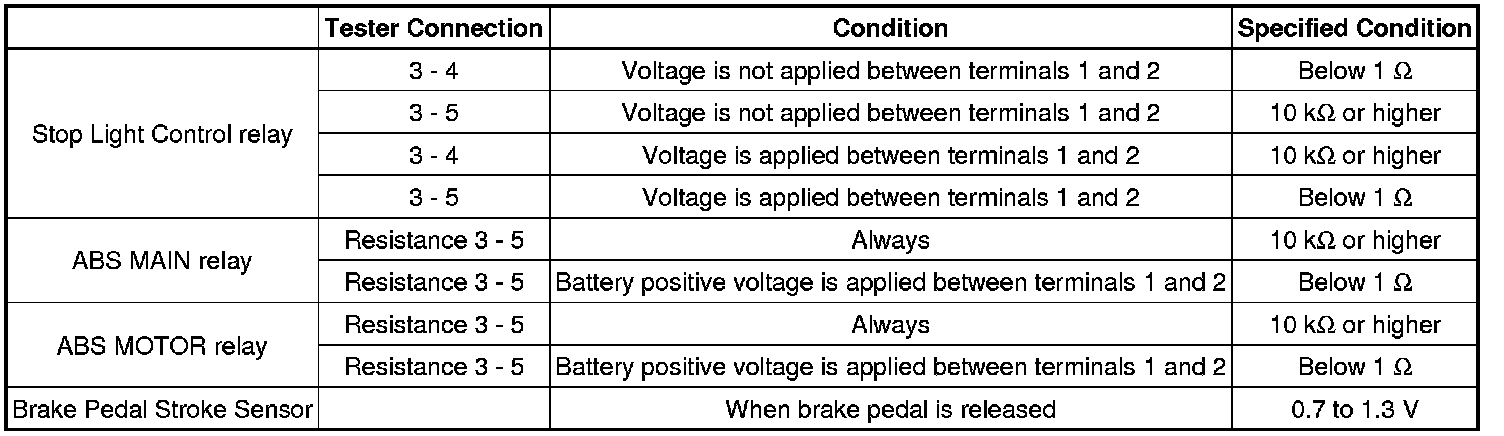SERVICE SPECIFICATIONS: BRAKE CONTROL: SERVICE DATA