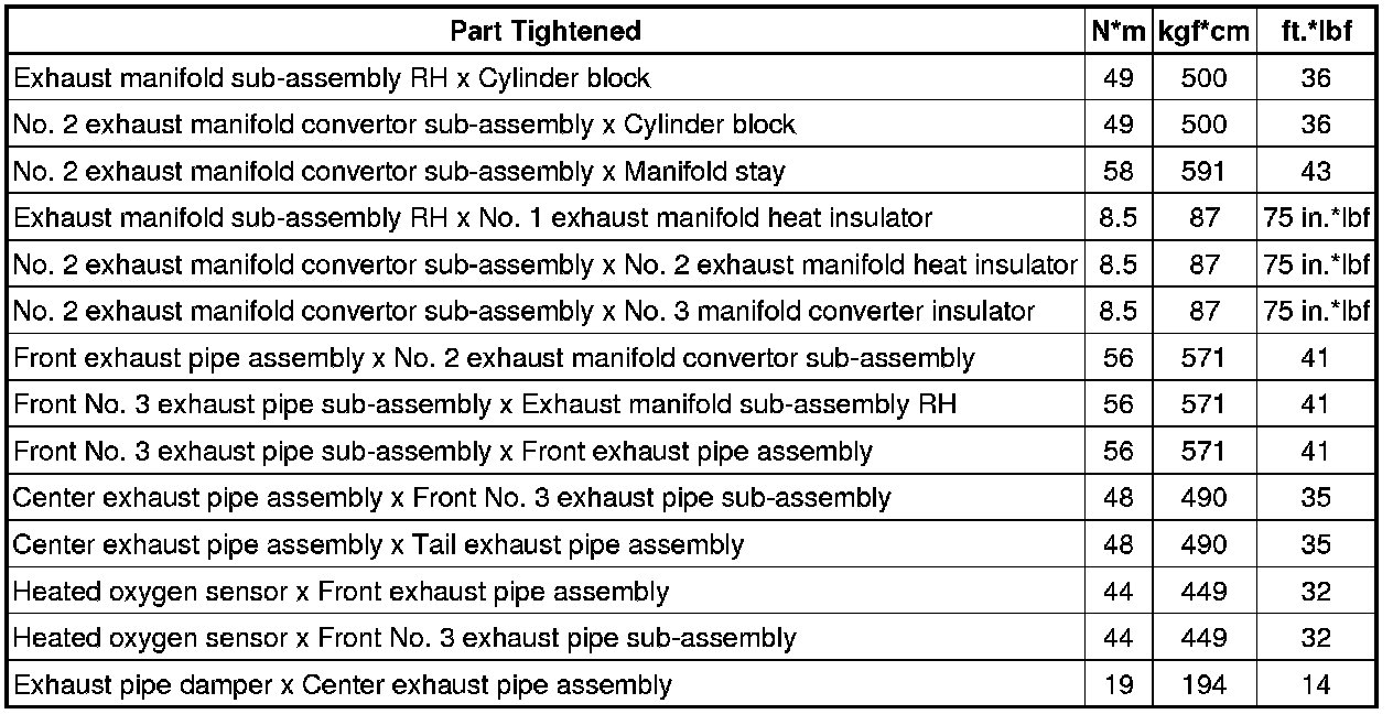 SERVICE SPECIFICATIONS: 3MZ-FE EXHAUST: TORQUE SPECIFICATIONS