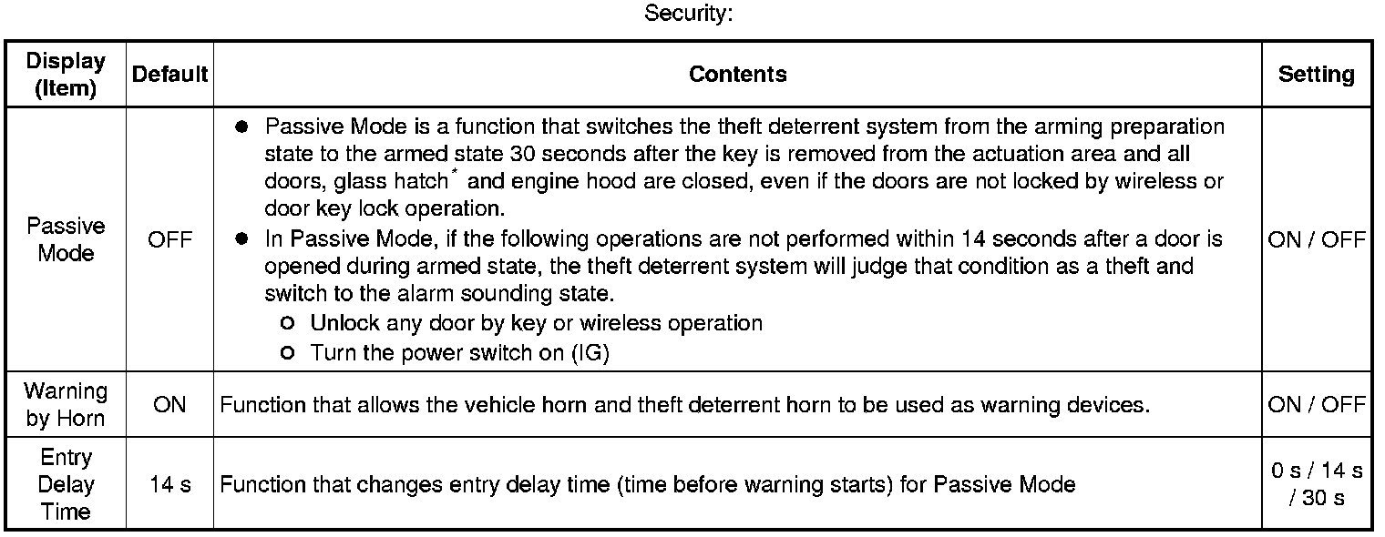 * *1: The default setting depends on the vehicle specification.