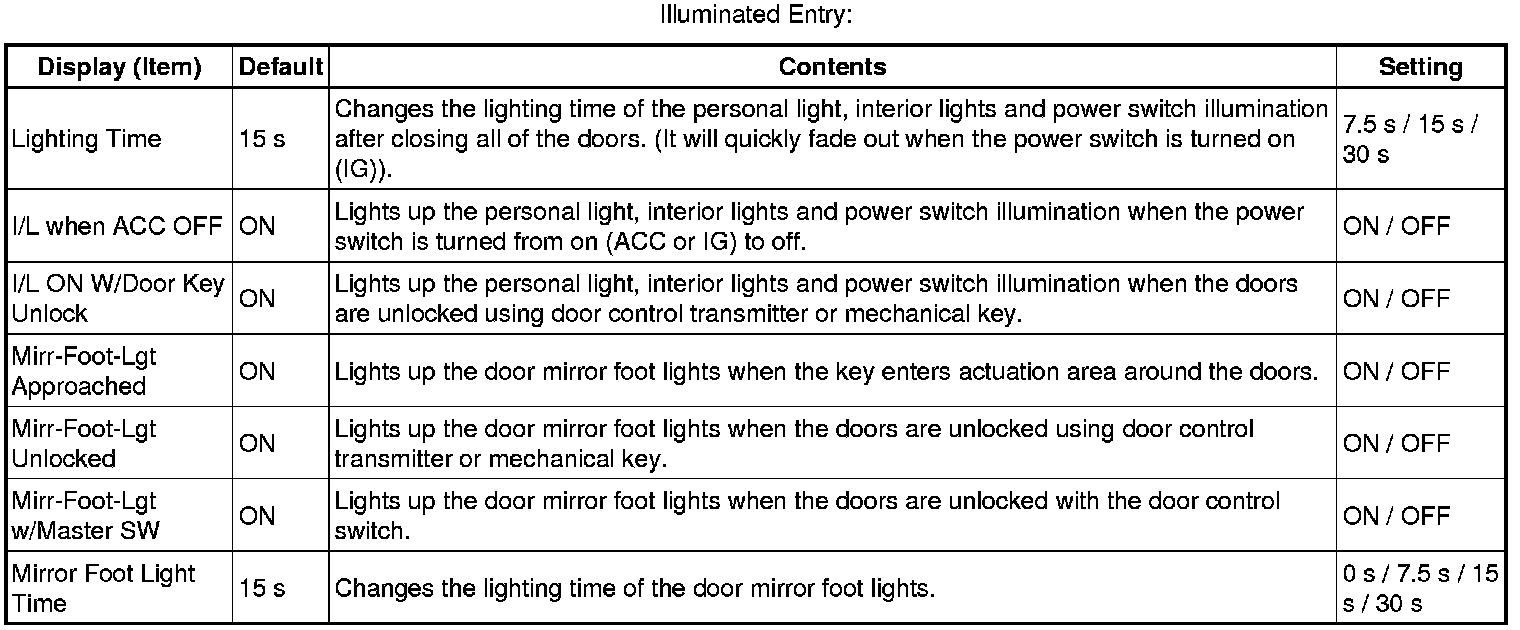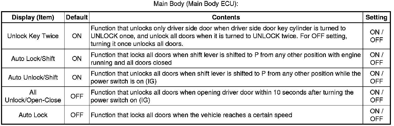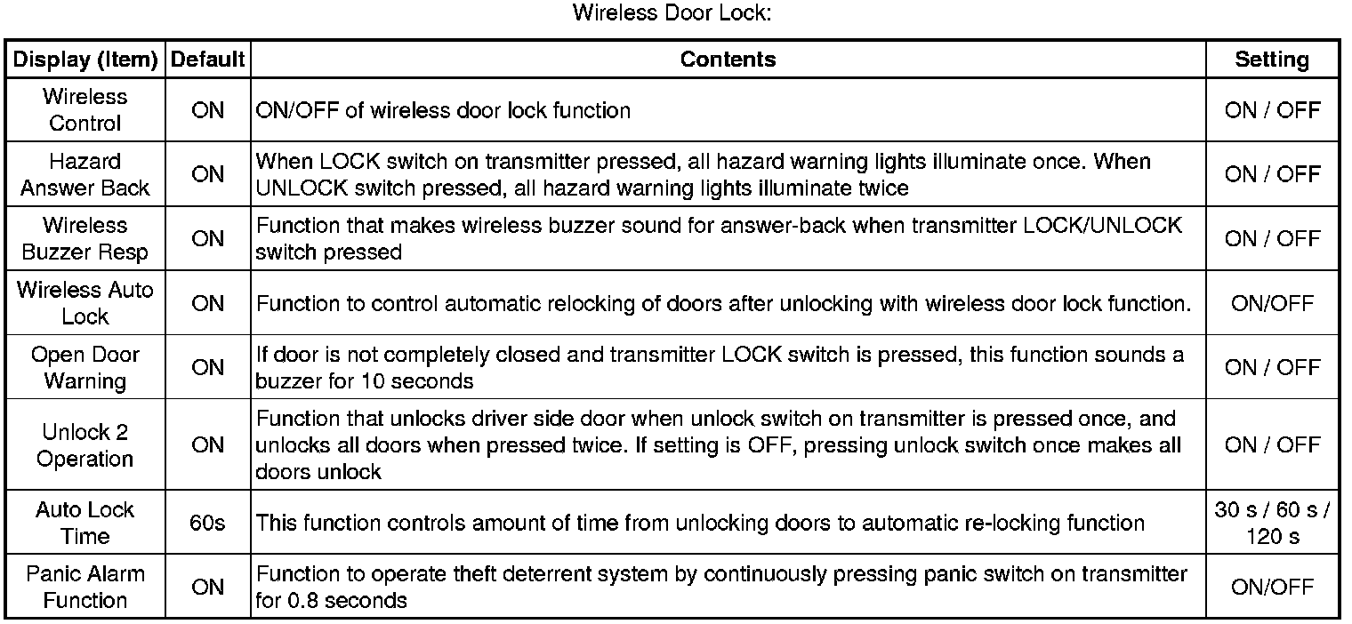 The function only changes the entry unlock mode of the smart key system. This function is not for the wireless door lock control.