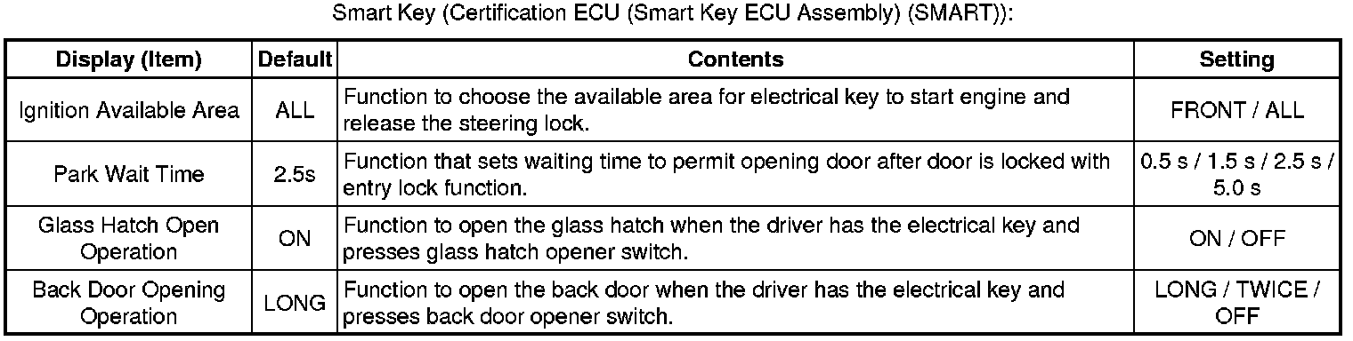(3) The certification ECU (smart key ECU assembly) sounds the wireless door lock buzzer and the buzzer in the combination meter to inform the user that the mode has been switched.