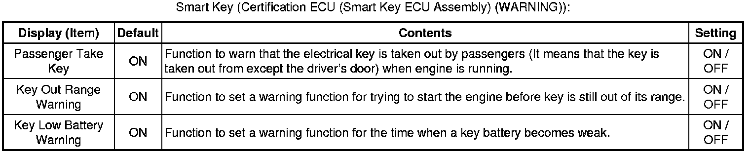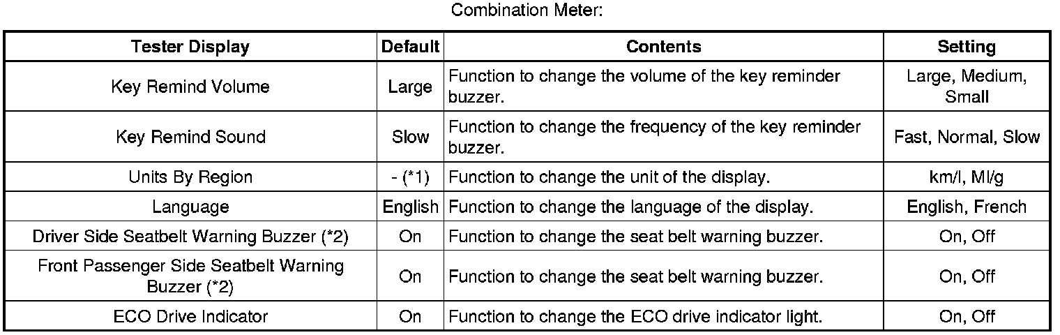 * *2: This setting is only valid for the buzzer which sounds at the 20 km/h (12 mph) or more.