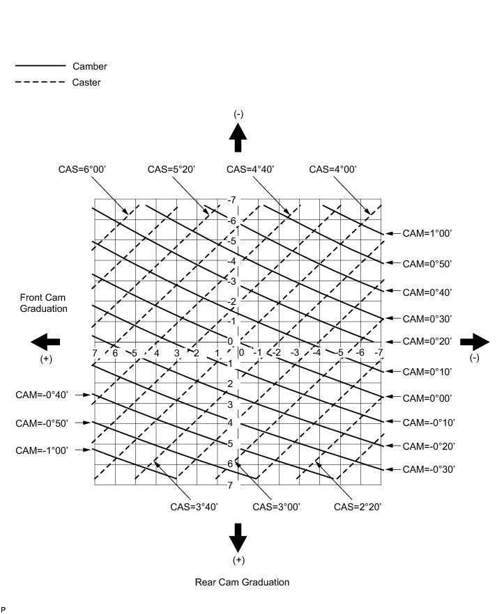 (4) As shown in the chart, read the distance from the marked point to 0, and adjust the front and/ or rear adjusting cams accordingly.