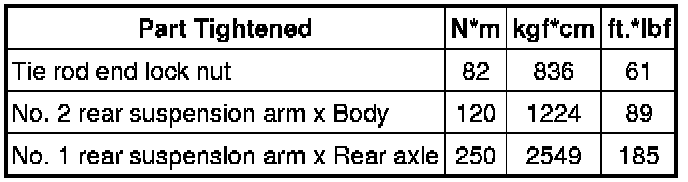 SPECIFICATIONS: ALIGNMENT / HANDLING DIAGNOSIS: TORQUE SPECIFICATIONS