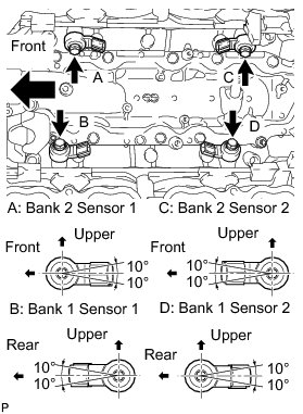 (a) Install the 4 sensors with the 4 bolts so that the sensors are angled as shown in the illustration.