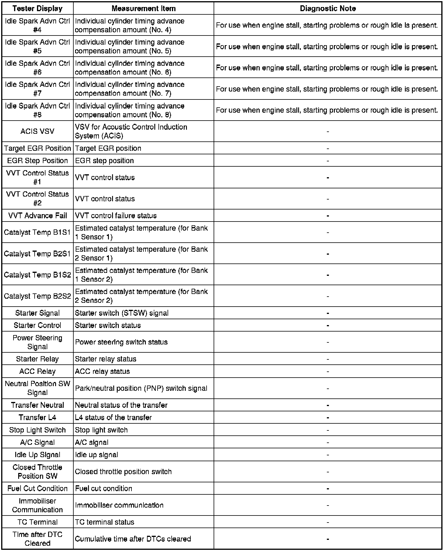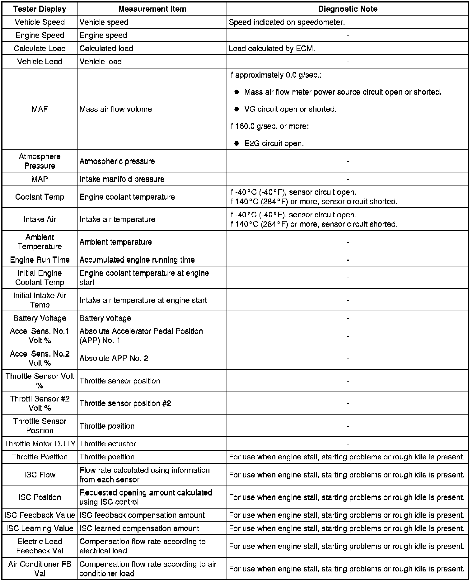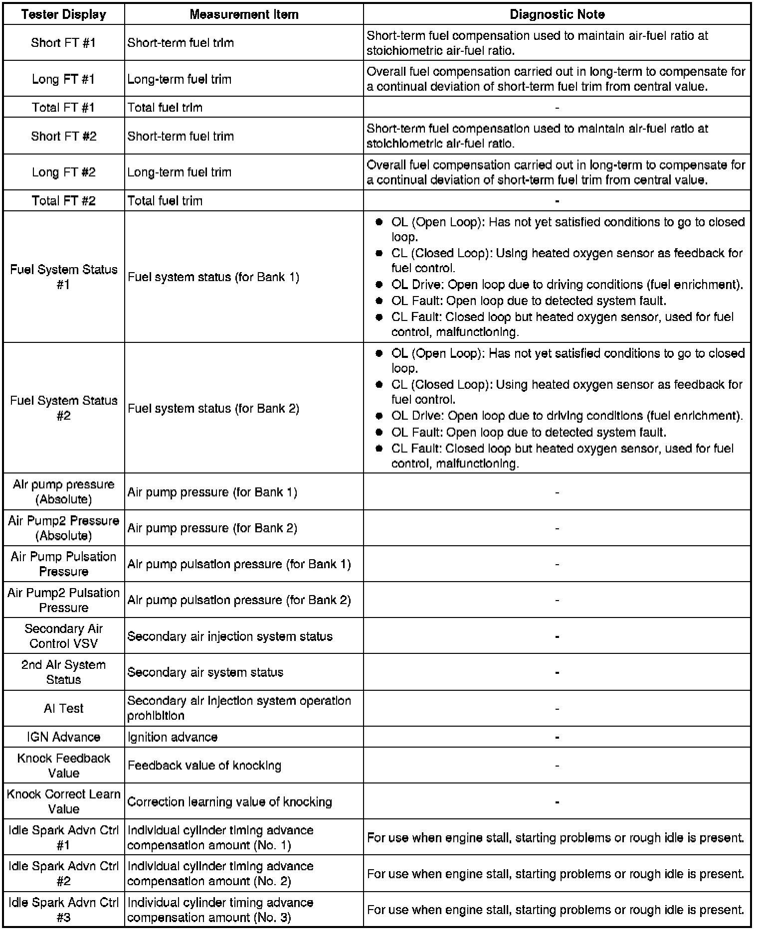 * Freeze frame data records the engine conditions (fuel system, calculated load, engine coolant temperature, fuel trim, engine speed, vehicle speed, etc.) when a malfunction is detected. When troubleshooting, it can help determine if the vehicle was moving or stationary, whether the engine was warmed up or not, whether the air-fuel ratio was lean or rich, and other data from the time the malfunction occurred.