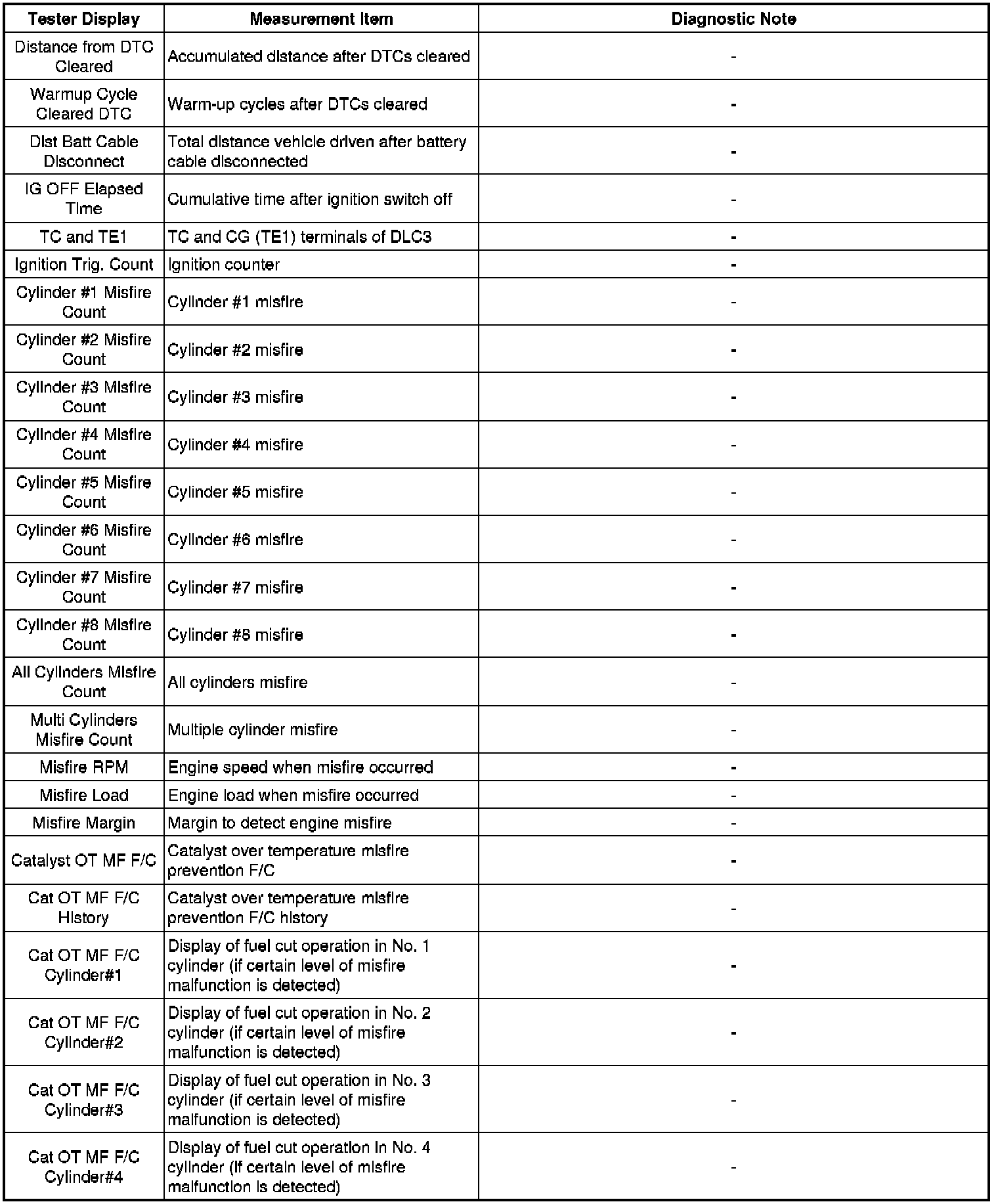 2. LIST OF FREEZE FRAME DATA