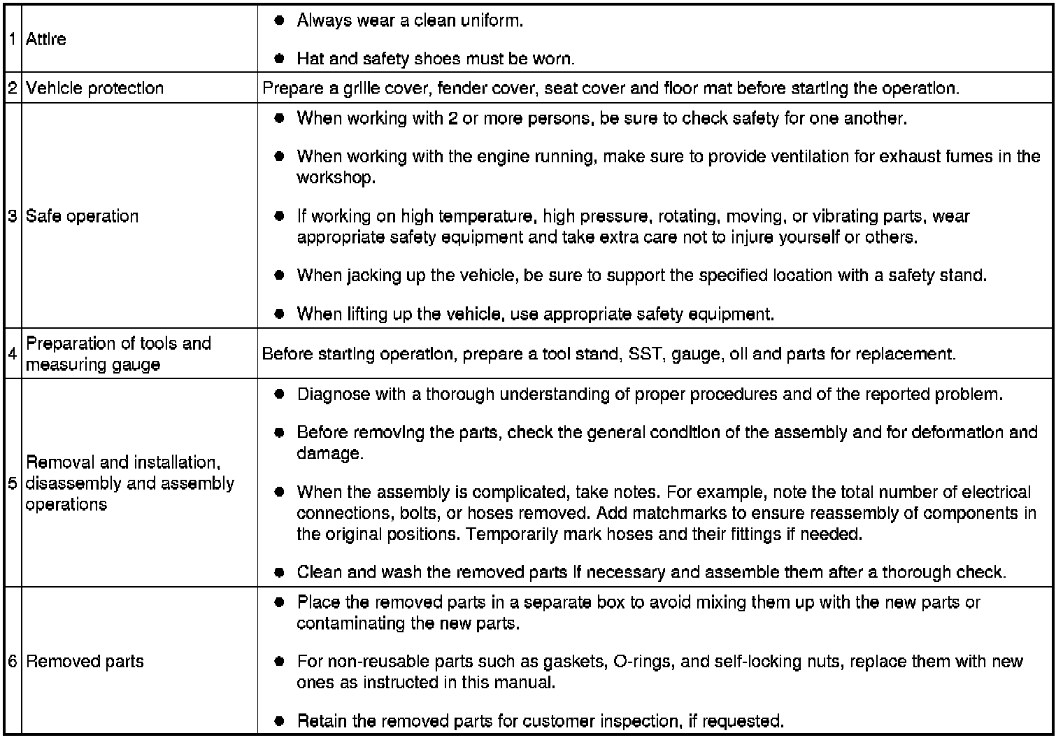 * Failure to carry out service procedures in the correct sequence could cause SRS parts to unexpectedly deploy and possibly lead to serious injuries. Furthermore, if a mistake is made when servicing SRS parts, they may fail to operate when required. Before performing servicing (including installation/removal, inspection and replacement of parts), be sure to read the following precautions.