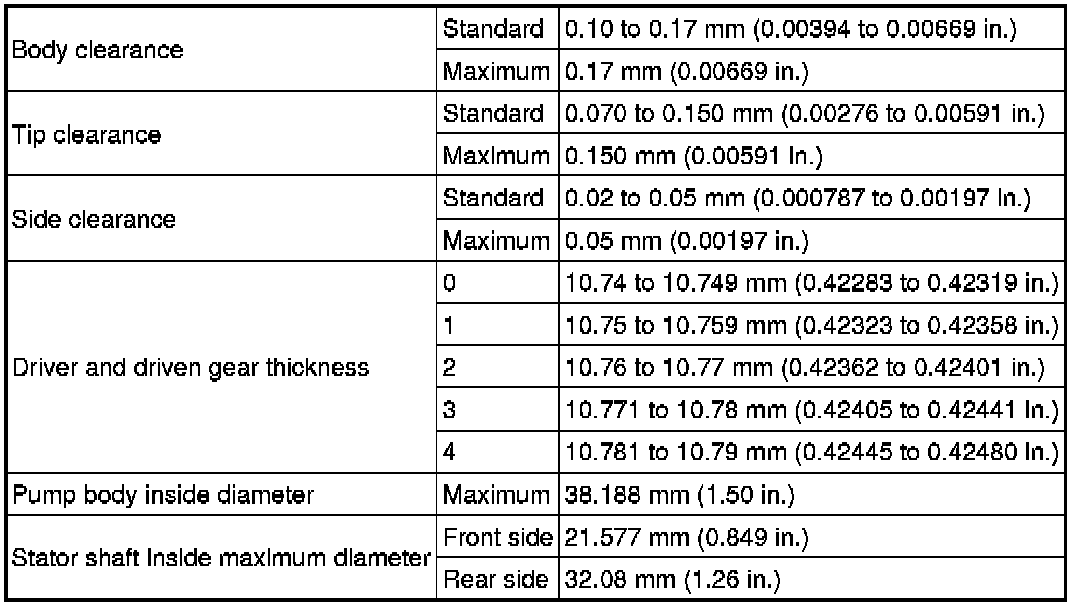 SPECIFICATIONS: A760E AUTOMATIC TRANSMISSION / TRANSAXLE: SERVICE DATA
