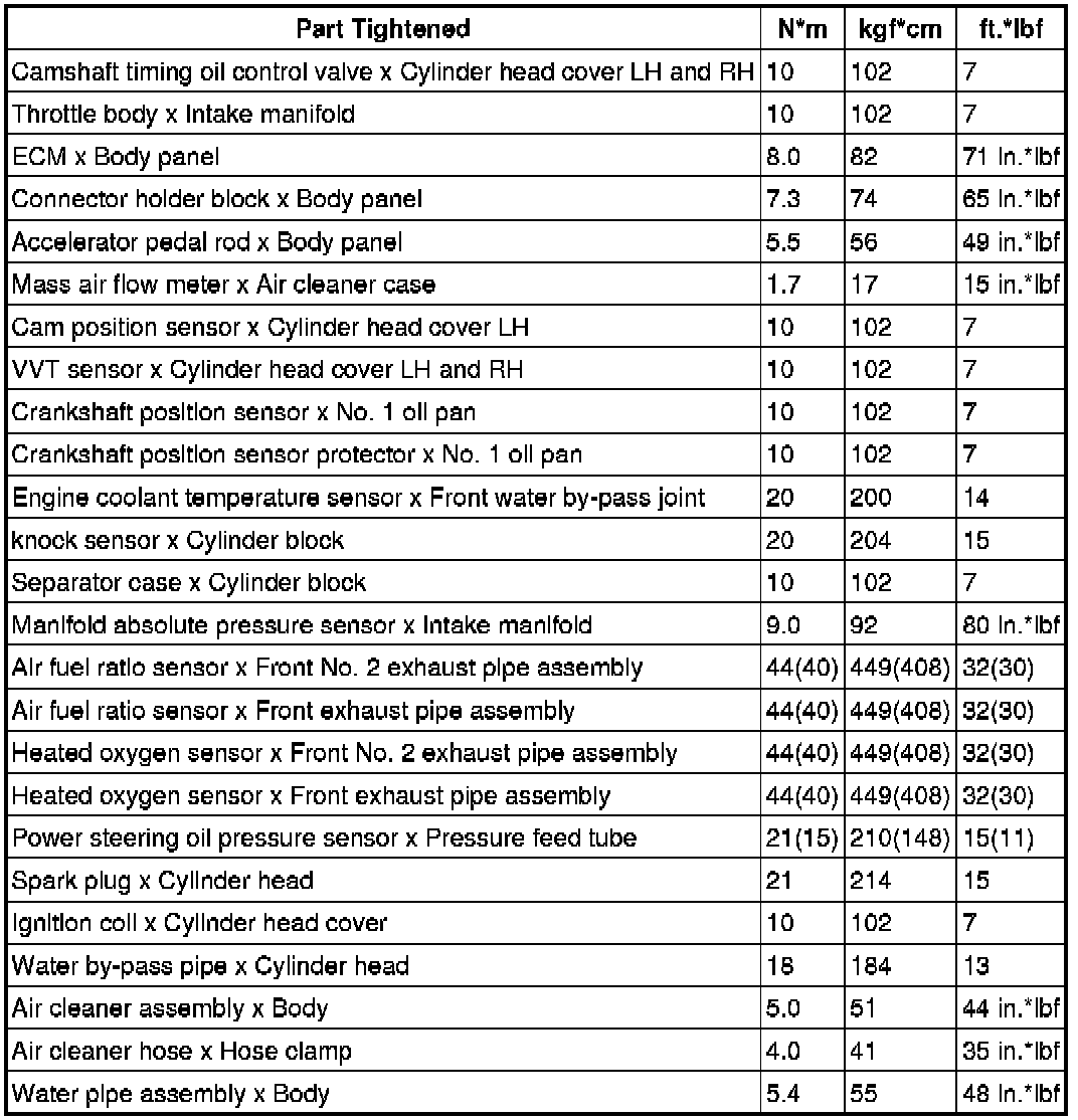 SPECIFICATIONS: 1UR-FE ENGINE CONTROL: TORQUE SPECIFICATIONS