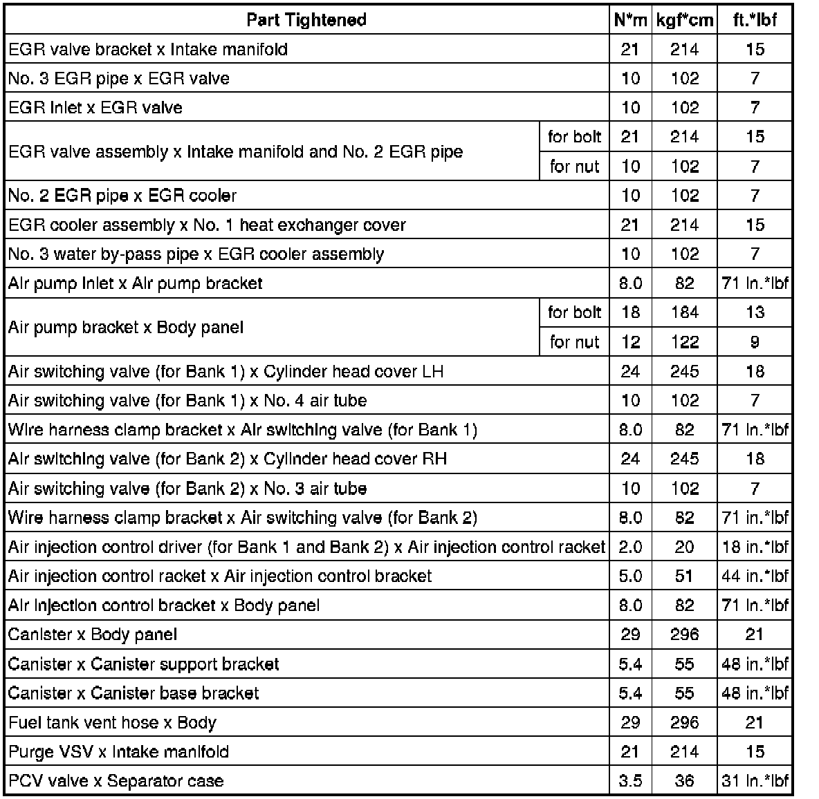 SPECIFICATIONS: 1UR-FE EMISSION CONTROL: TORQUE SPECIFICATIONS