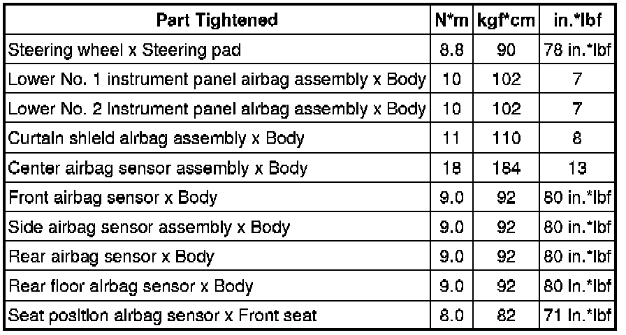 SPECIFICATIONS: SUPPLEMENTAL RESTRAINT SYSTEMS: TORQUE SPECIFICATIONS