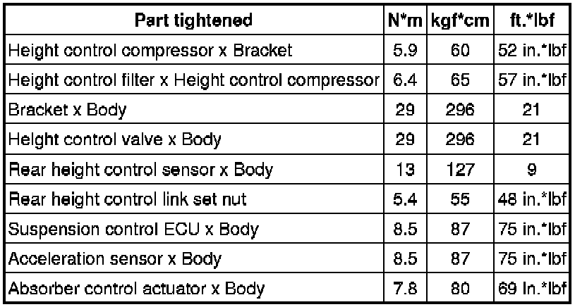CONTROL: TORQUE SPECIFICATIONS