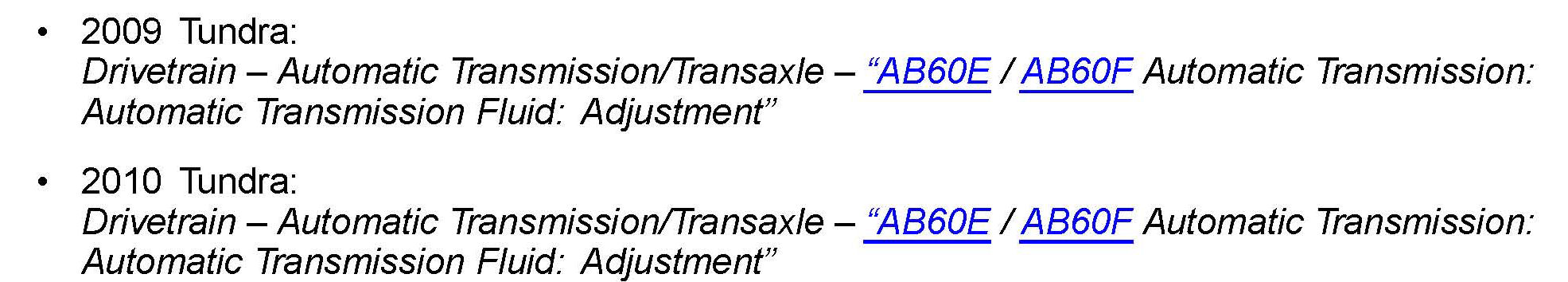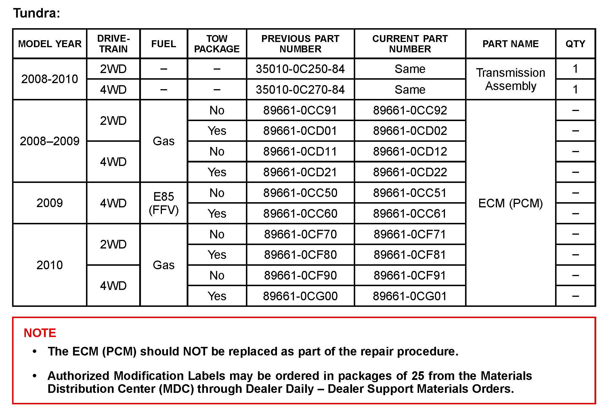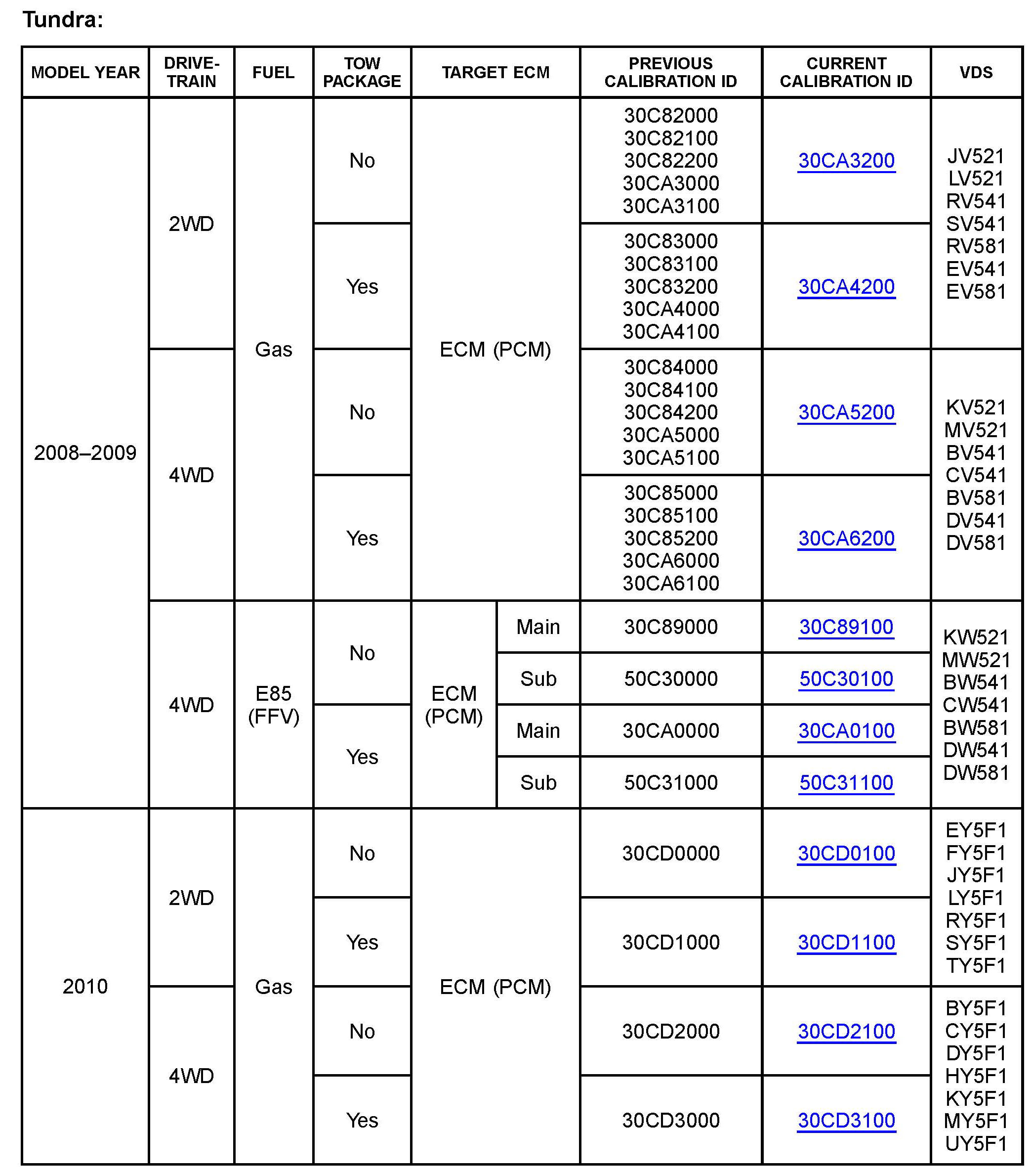^ Applicability has been updated to include 2010 model year Tundra vehicles.