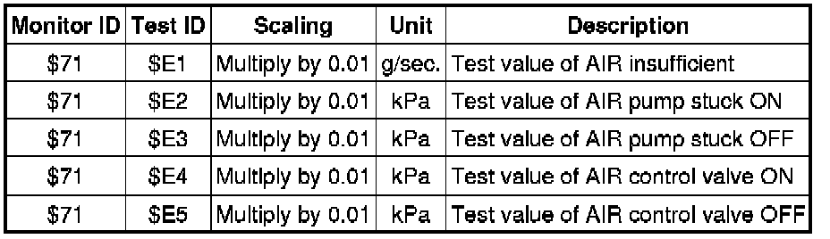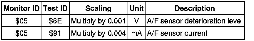 If you use a generic scan tool, multiply the test value by the scaling value listed below.