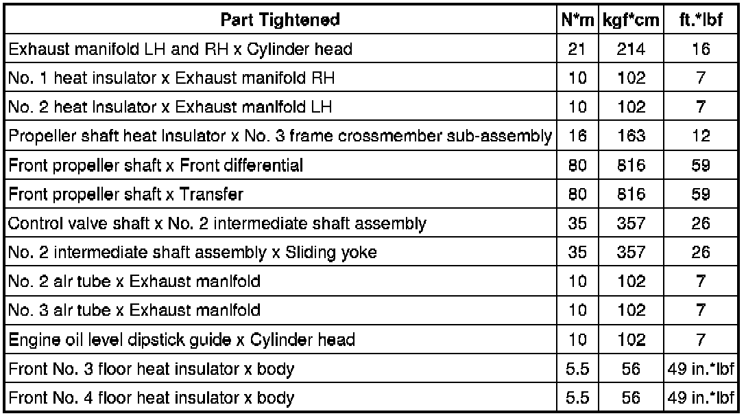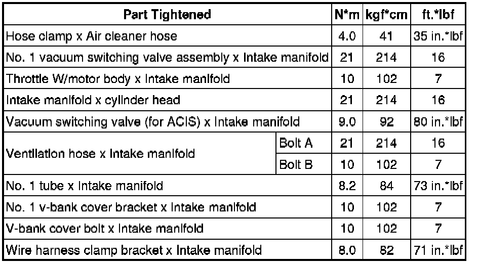 SPECIFICATIONS: 3UR-FE INTAKE / EXHAUST: TORQUE SPECIFICATIONS