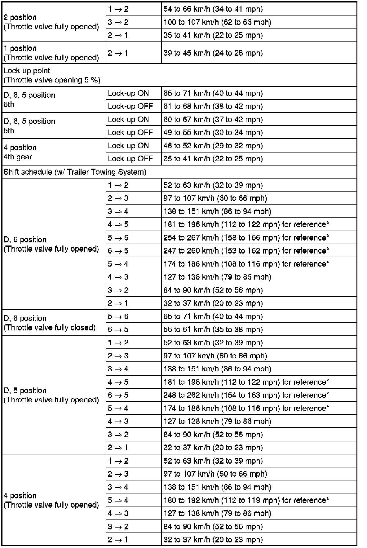 SPECIFICATIONS: AB60F AUTOMATIC TRANSMISSION / TRANSAXLE: SERVICE DATA