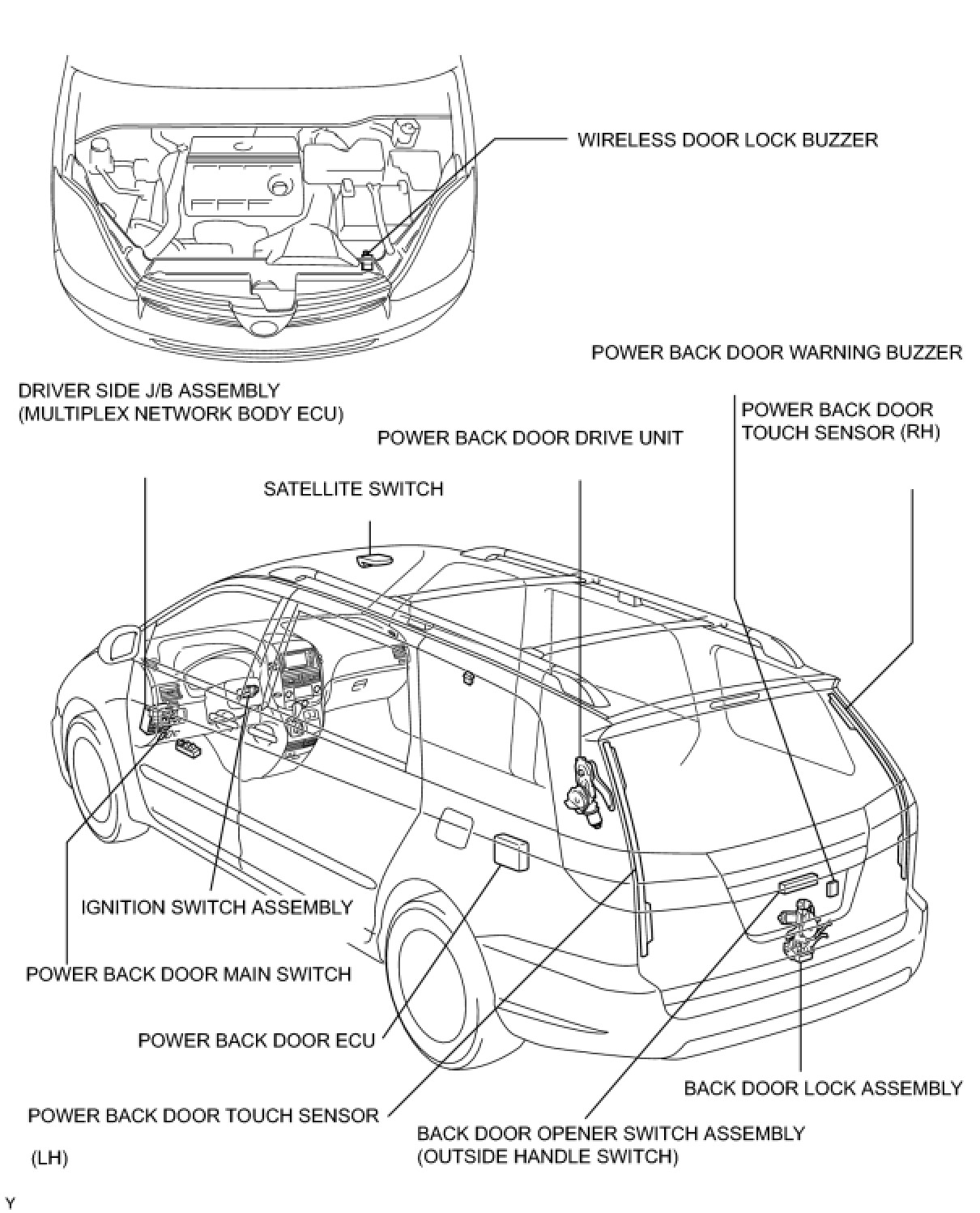 ENGINE HOOD / DOOR: POWER BACK DOOR SYSTEM: PARTS LOCATION