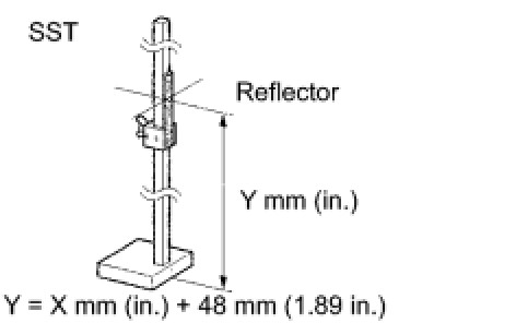 (2) Adjust the center height of the reflector 48 mm (1.89 in.) higher than the center of the luminous portion.