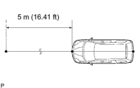 Fix one end of the string to the rear center mark and move the other end right and left at a point 5 m (16.41 ft) from the front of the vehicle. Make a 5 m (16.41 ft) mark when the string and the front vehicle center mark intersect.