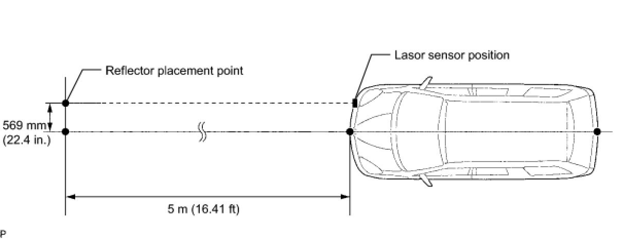 (5) From the 5 m (16.41 ft) marked position, measure 569 mm (22.4 in.) to the right and place the reflector there.