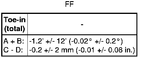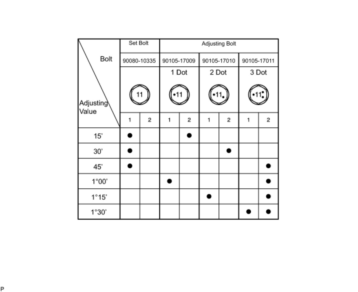 * If the camber is not within the specified value, using the following table, estimate how much additional camber adjustment will be required, and select the camber adjusting bolt.