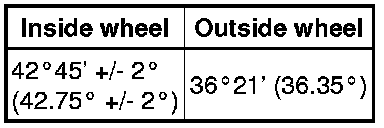 If the right and left inside wheel angles are not as specified, check the right and left rack end lengths.