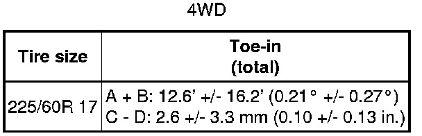 If the toe-in is not within the specified value, inspect the suspension parts and replace them if necessary.