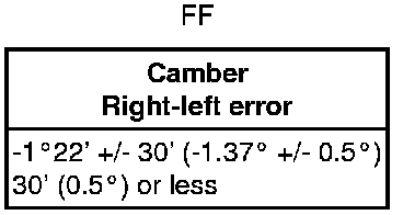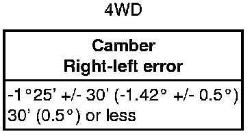 If the measured value is not within the specified value, inspect the suspension parts for damage and the wear and replace them if necessary because camber is not adjustable.
