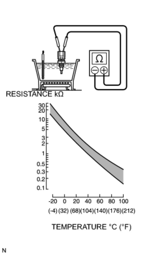 In case of checking the engine coolant temperature sensor in water, do not allow water to go into the terminals. After checking, dry the engine coolant temperature sensor.