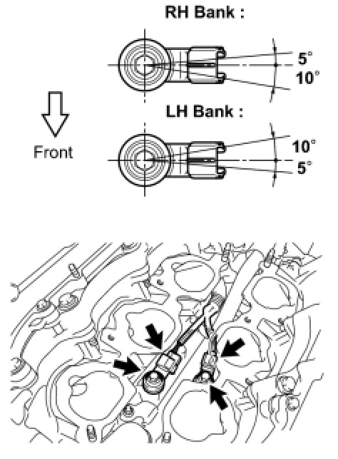 (a) Install the 2 knock control sensors with the 2 bolts as shown in the illustration.