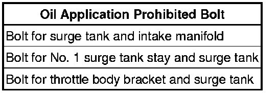 DO NOT apply oil to the bolts listed below.