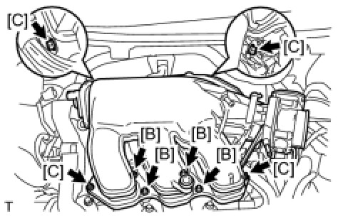 (b) Using a 5 mm hexagon socket wrench, install the 4 bolts [B].