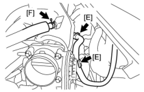 (i) Connect the 2 water by-pass hoses to the throttle with motor body assembly [I].