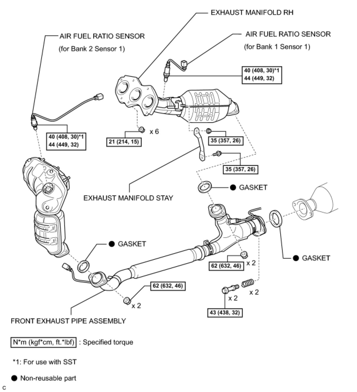 2GR-FE EMISSION CONTROL: AIR FUEL RATIO SENSOR (for 2WD): COMPONENTS