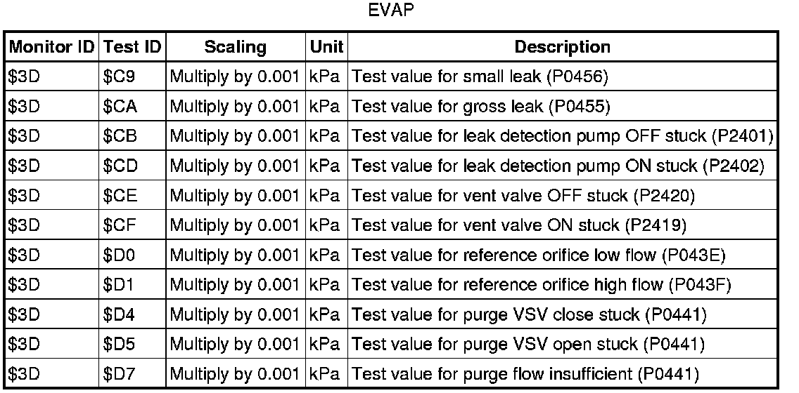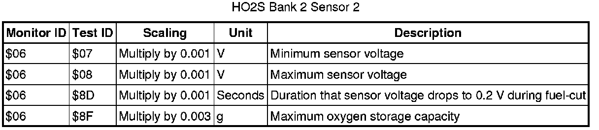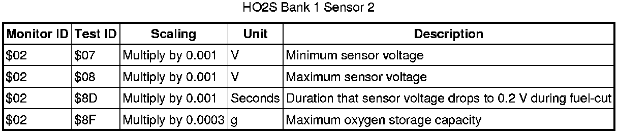 If you use a generic scan tool, multiply the test value by the scaling value listed below.