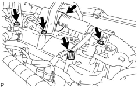 (a) Remove the 2 bolts and nut and disconnect the 2 harness clamps.