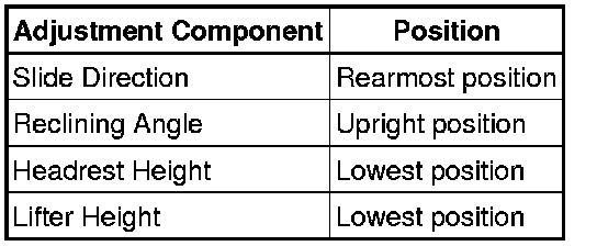 (2) Adjust the seat position according to the table below.