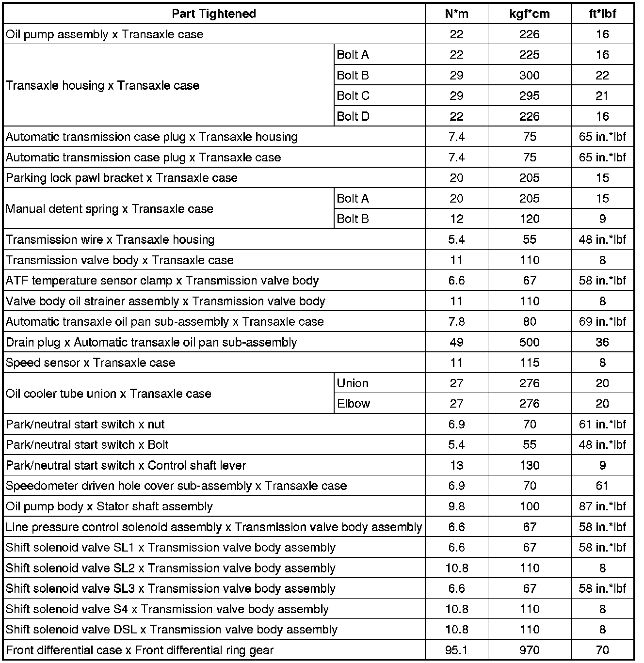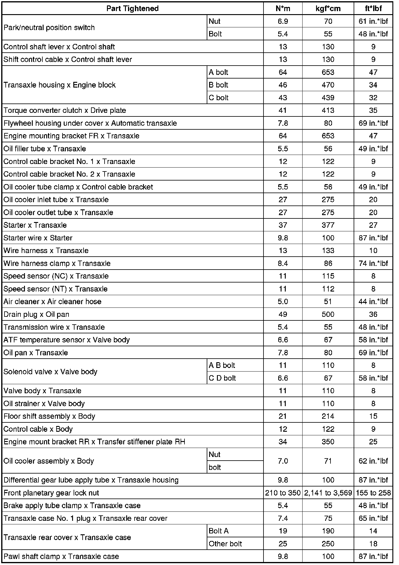 SERVICE SPECIFICATIONS: U151E AUTOMATIC TRANSAXLE: TORQUE SPECIFICATIONS