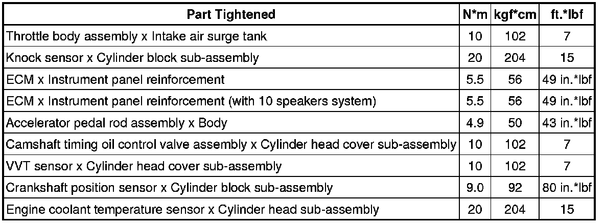 SERVICE SPECIFICATIONS: 2GR-FE ENGINE CONTROL SYSTEM: TORQUE SPECIFICATIONS