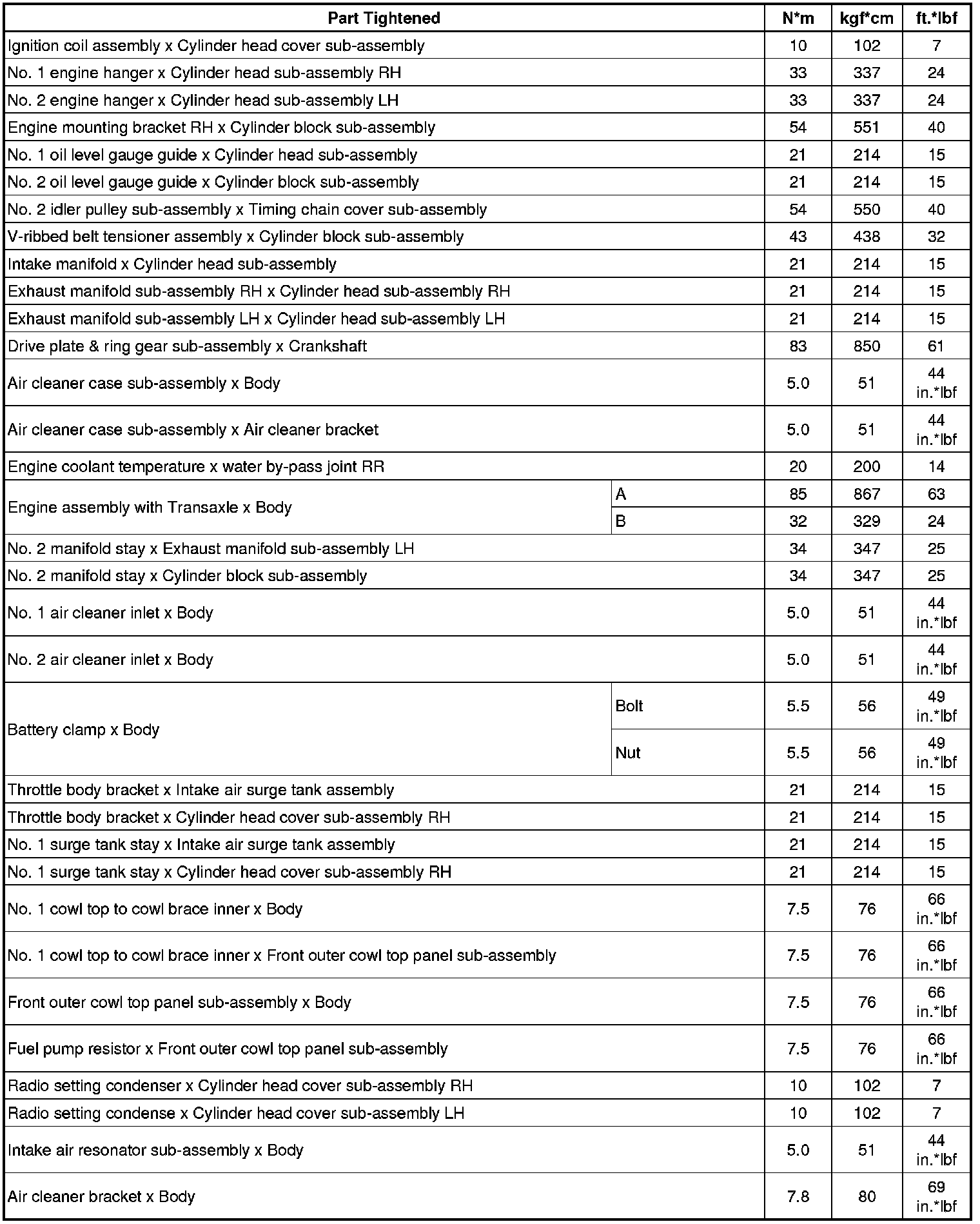 Torque Specifications