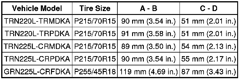 * Perform the inspection while the vehicle is empty (without spare tires or tools on board).