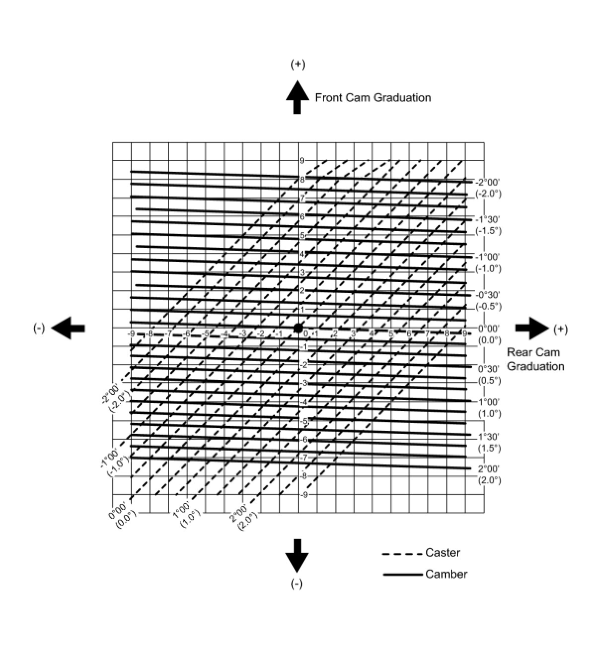 (3) As shown in the chart, read the distance from the marked point to the 0 point, and adjust the front and/or rear adjusting cams accordingly.