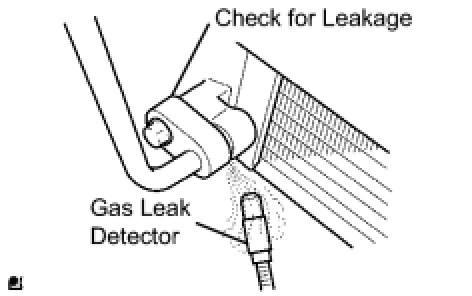(c) Using a gas leak detector, check the refrigerant line for leakage.
