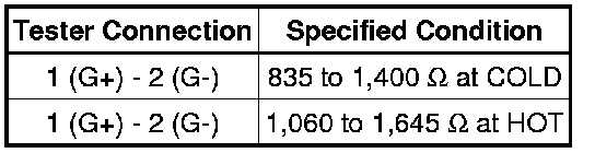 (2) If the result is not as specified, replace the camshaft position sensor.