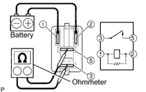 (2) If the result is not as specified, replace the circuit opening relay assembly.