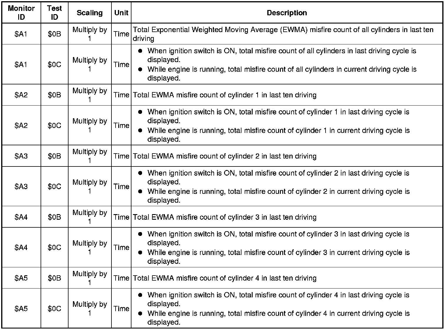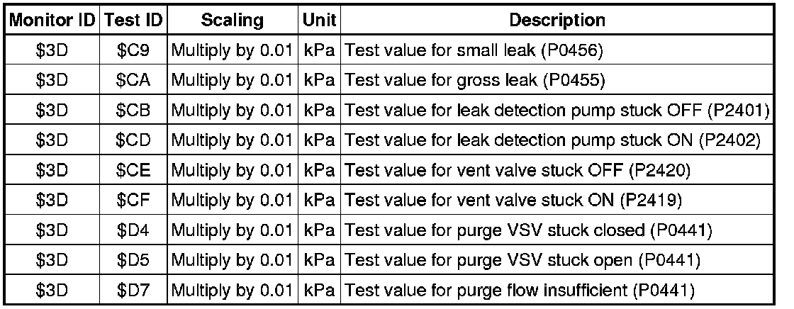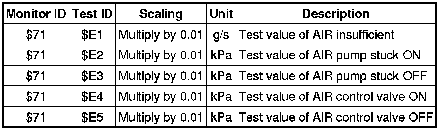 If you use a generic scan tool, multiply the test value by the scaling value listed below.