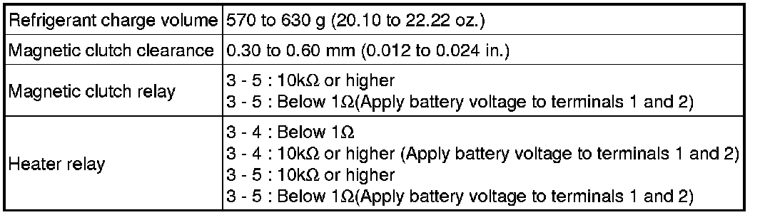 SERVICE SPECIFICATIONS: AIR CONDITIONING: SERVICE DATA